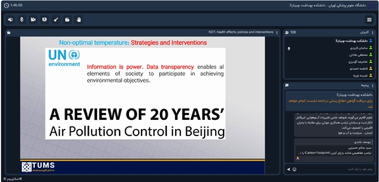 This session was organized by the Climate Change and Health Research Center, affiliated with the Research Institute for Environmental Sciences, Tehran University of Medical Sciences, and hosted at the School of Public Health.